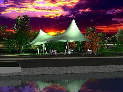 覆蓋大跨度空間:膜結(jié)構(gòu)中所使用的膜材料每平方壹公斤左右,由于自重輕,加上鋼索、鋼結(jié)構(gòu)高強度材料的采用,與受力體系簡潔合理,大部分以軸力傳遞,故使膜結(jié)構(gòu)適合跨越大空間而形成開闊的無柱大跨度結(jié)構(gòu)體系。